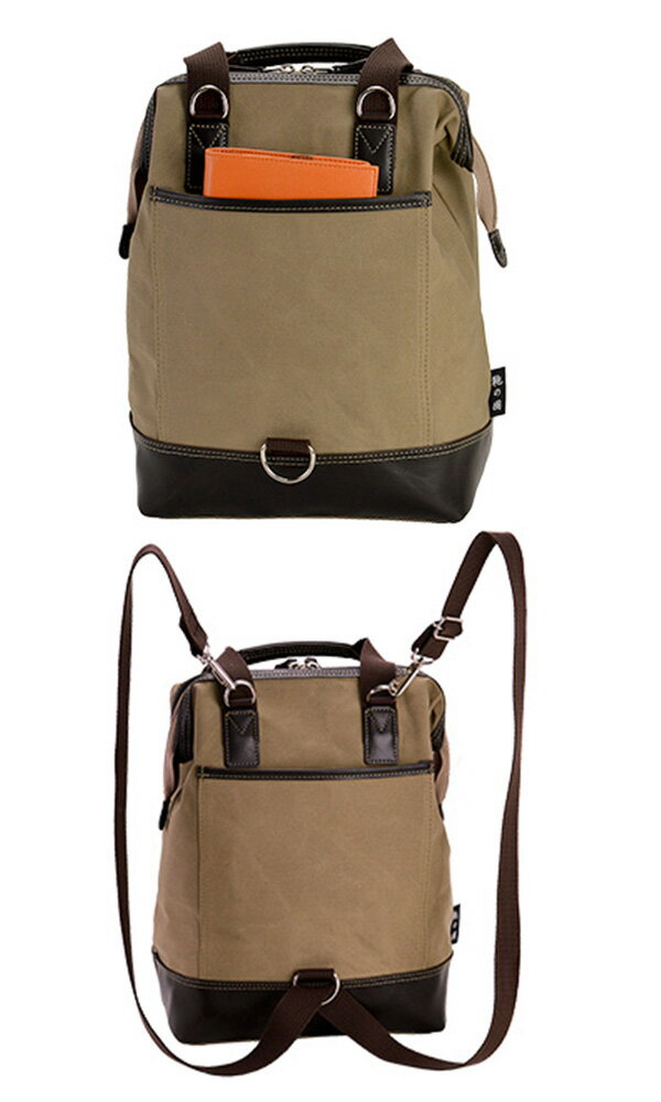 サイズ(約)H24×W33×D12cm、重さ(約)470g素材帆布、パラフィン加工仕様本体内部:ファスナーポケット、オープンポケット2ヶ、正面:カブセポケット、背面:オープンポケット、底板付、ショルダーベルト、Made in japan、3通りの用途に合わせた持ち方ができます。