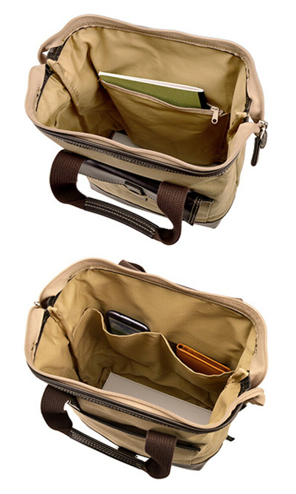 Item Informationサイズ(約)H24×W33×D12cm、重さ(約)470g仕様帆布、パラフィン加工 本体内部:ファスナーポケット、オープンポケット2ヶ、正面:カブセポケット、背面:オープンポケット、底板付、ショルダーベルト、Made in japan、3通りの用途に合わせた持ち方ができます。