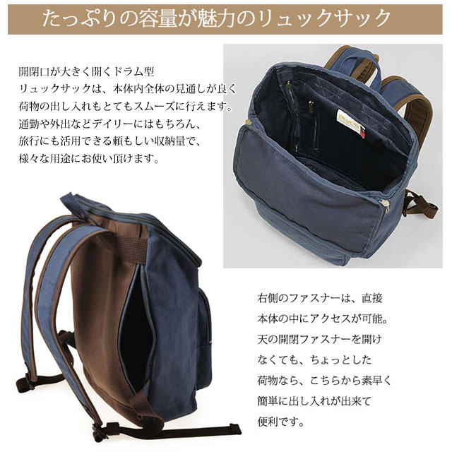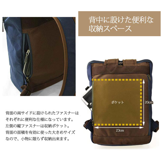 仕様・詳細 ◆本体サイズ:幅27x高36x行12(cm) ◆仕様 【本体外側】 ・(天カブセ)ファスナーポケット×1 ・(本体前面)ファスナーポケット×1 その内装にオープンポケット×2 【本体背面】 ・ファスナーポケット×1 ・ファスナー×1(※本体内へアクセス可能) 【本体内装】 ・ファスナーポケット×1 ◆重量/本体:約580g ◆素材・コットン(10号帆布、パラフィン加工) 牛革 ◆原産国:日本 ※画像撮影時の光量具合により、現物と若干色合いが異なる場合がございます。