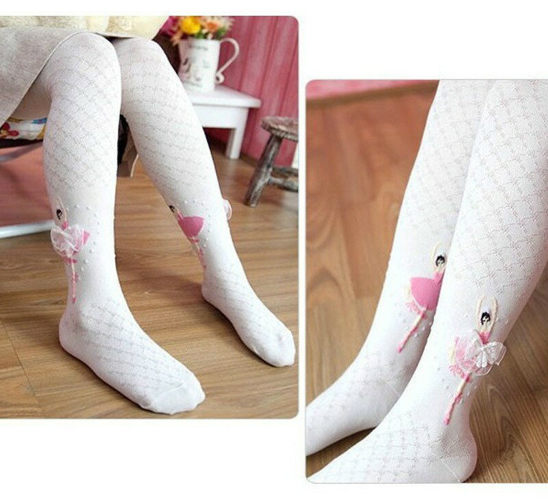 バレリーナ柄がアクセントになっていてかわいい子供用タイツです。